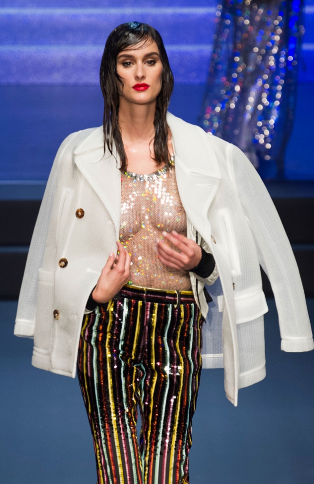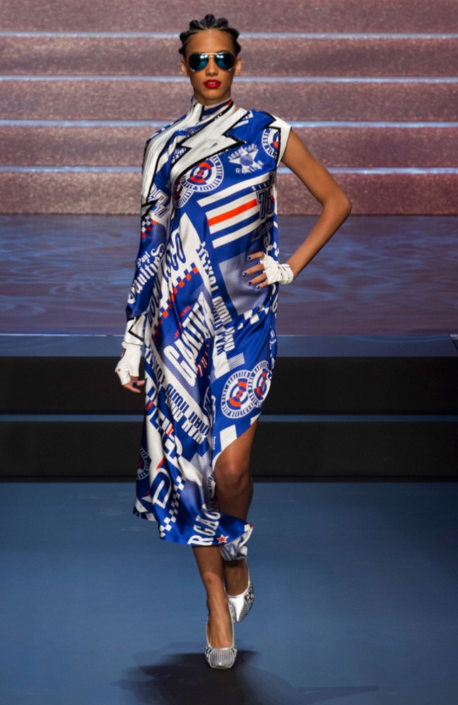 Alle iconische elementen uit zijn oeuvre kwamen voorbij: de karakteristieke strepen, schoudervullingen en uiteraard de beroemde punt-bh die destijds door Madonna wereldberoemd werd gemaakt.